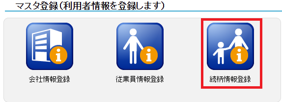 メニュー画面の「マスタ登録(利用者情報を登録します)」の「続柄情報登録」をクリックします。
