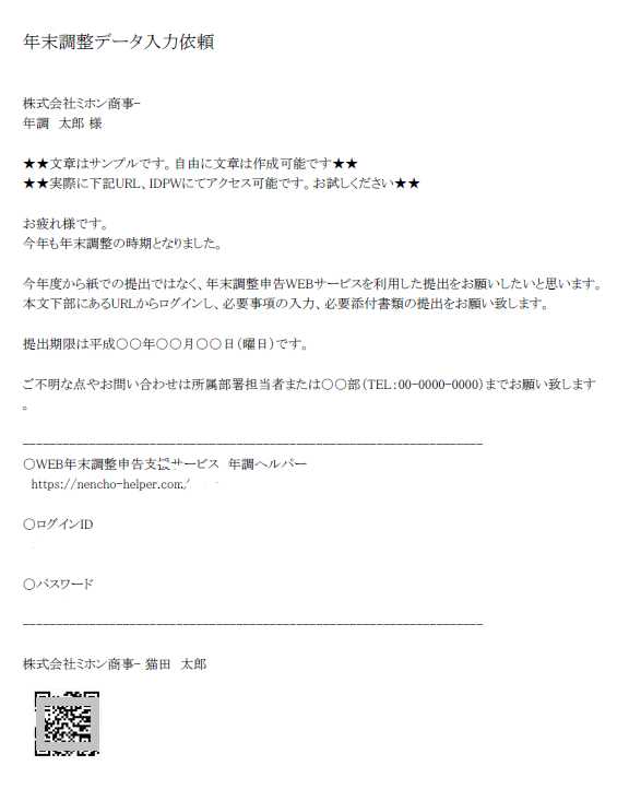 メニューの「通知本文設定」でテンプレートを作成し、従業員への通知をPDFデータにします。