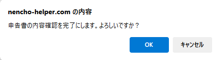 ※修正項目にチェックがないと、申告書内容確認画面を完了する画面を表示します。[キャンセル]をクリックすると、