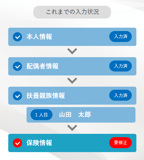 ※「入力済み」と表示されている項目は修正ができません。
