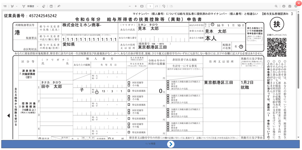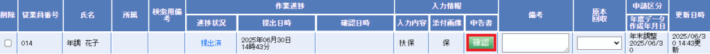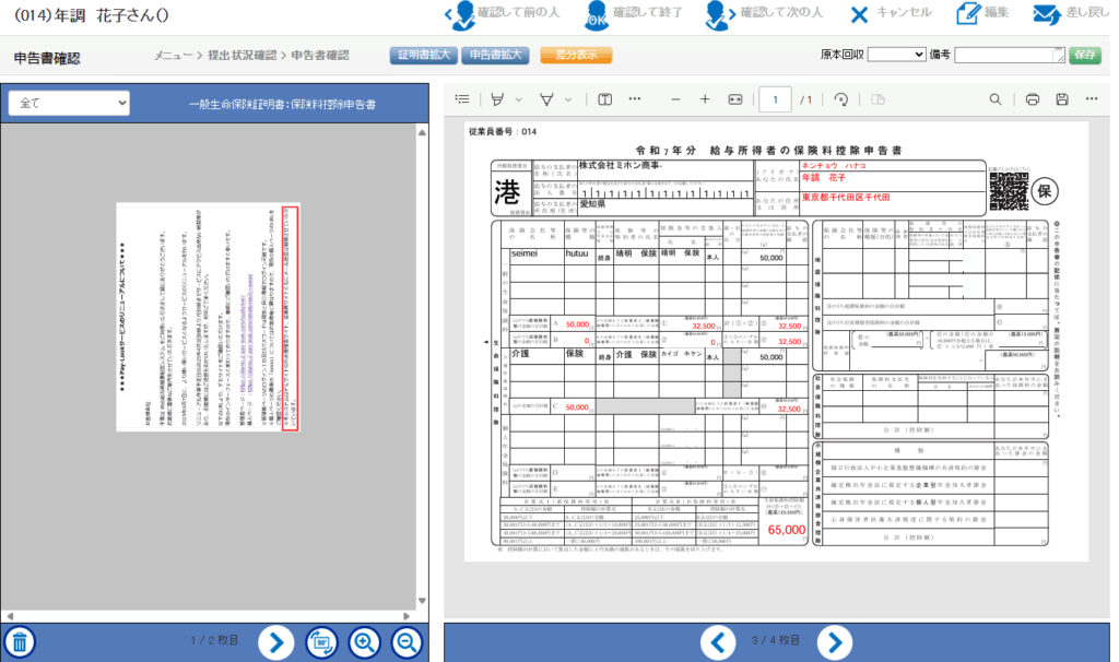 (2)申告書確認画面で差分が存在する場合、文字色が変わっていることが確認できます。