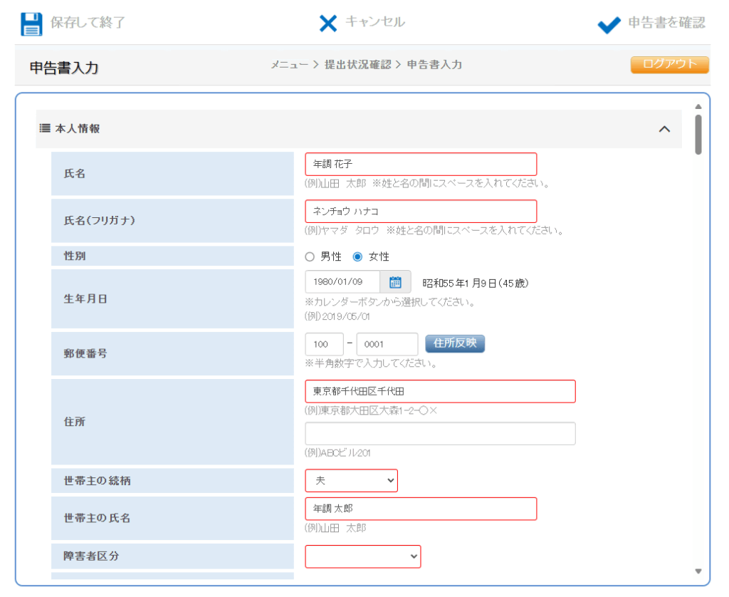 (7)申告書入力画面で差分に該当する項目が赤枠で表示されていることを確認できます。